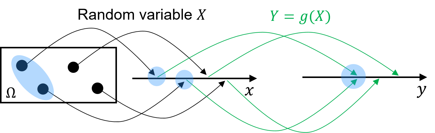\[\large{p_Y(y)=\sum_{\\{x|g(x)=y\\}}p_X(x)}\]